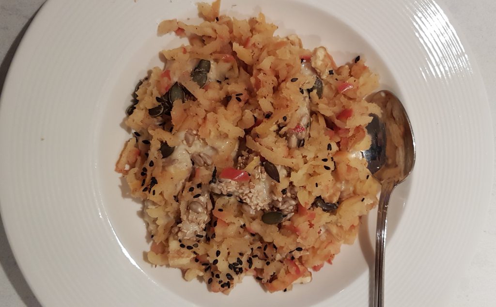 en dan over je havermout met wat noten en zaden erbij. Heeeerlijk!