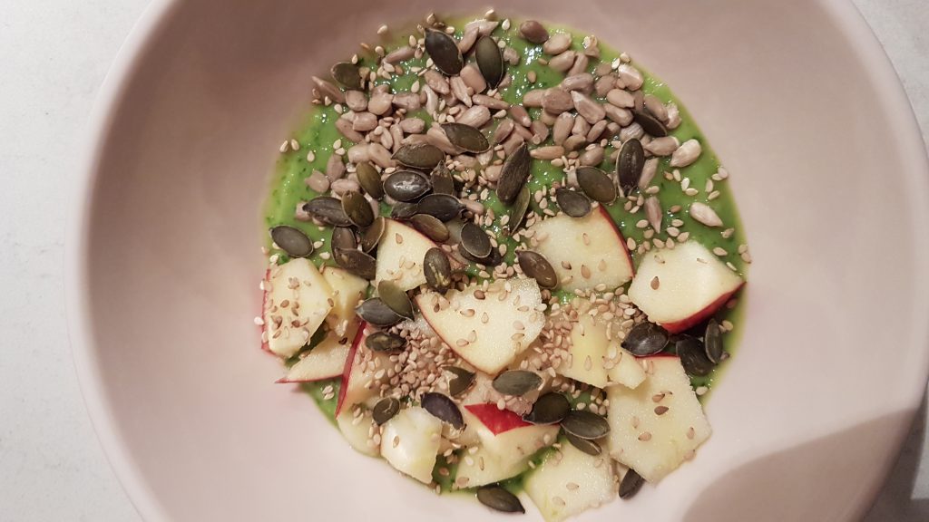 Deze smoothie bowl is niet zo zoet, eventueel kan je er nog wat honing doorheen doen als je van zoet houd.